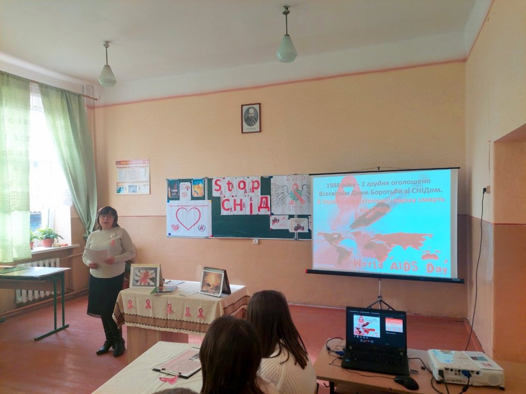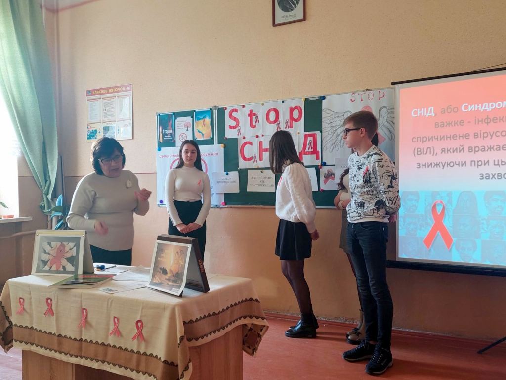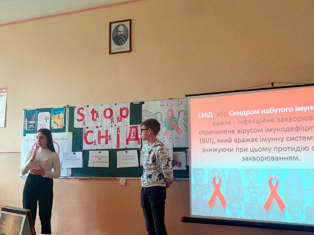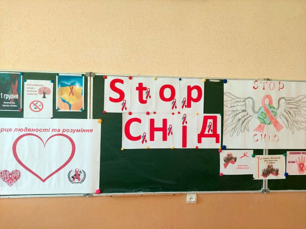 У рамках акції «16 днів без насильства» 1 грудня класним керівником 10-Б Медвідь М.І. було проведено годину спілкування «Зупинимо СНІД разом!» Під час заходу учні поповнили свої знання про те, як вберегти себе і своїх рідних від цієї хвороби, повторили шляхи передачі ВІЛ/СНІД, виконали вправи «5 секунд», «Цінності учнів», «Клякса», «Серце людяності та розуміння». Також, у фойє школи було оформлено виставку малюнків «Стоп СНІД!». Такі заходи допомагають учням усвідомити всю небезпеку, яку несе СНІД, уберегти себе від страшного захворювання, зробити правильний вибір у житті.