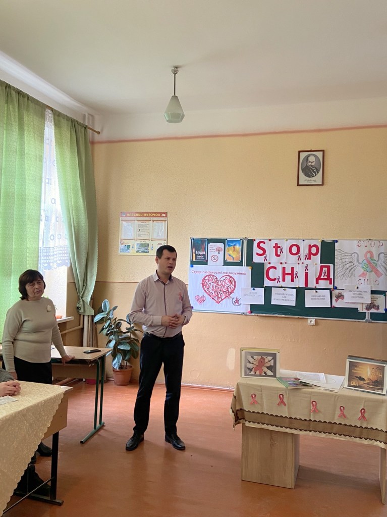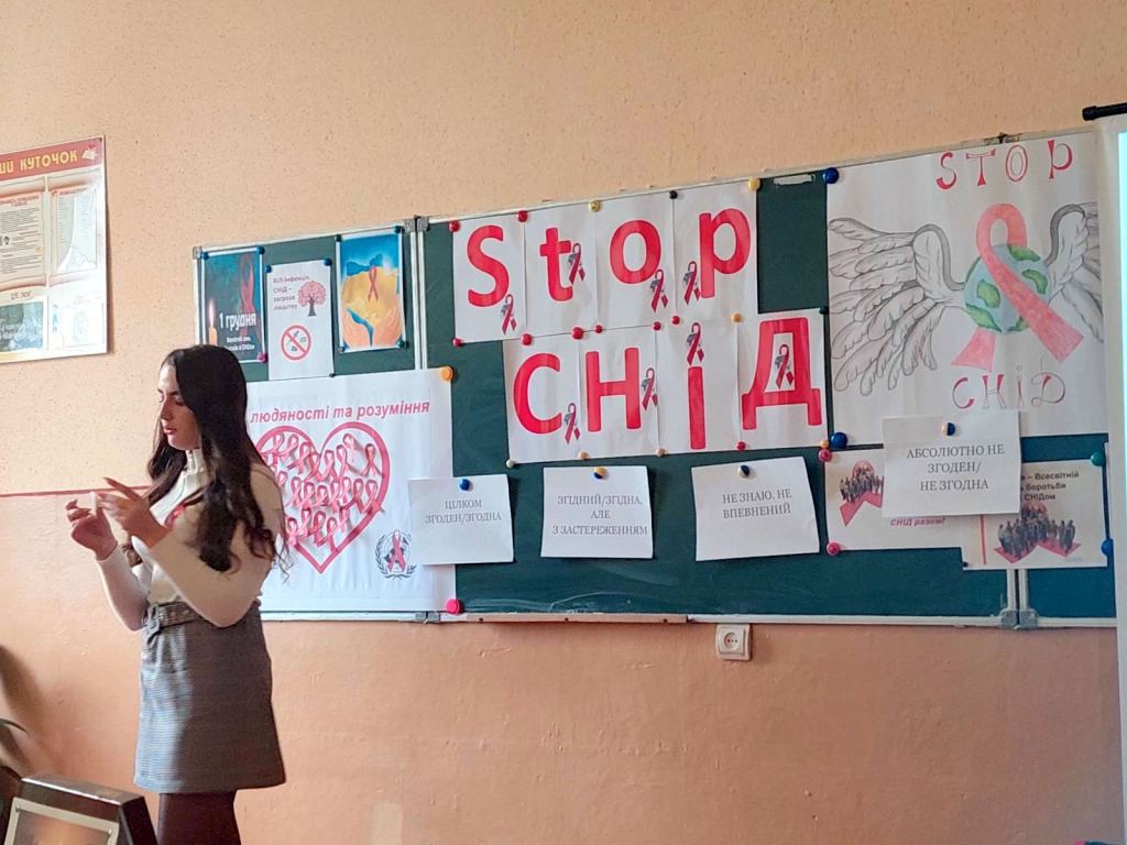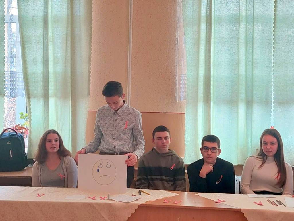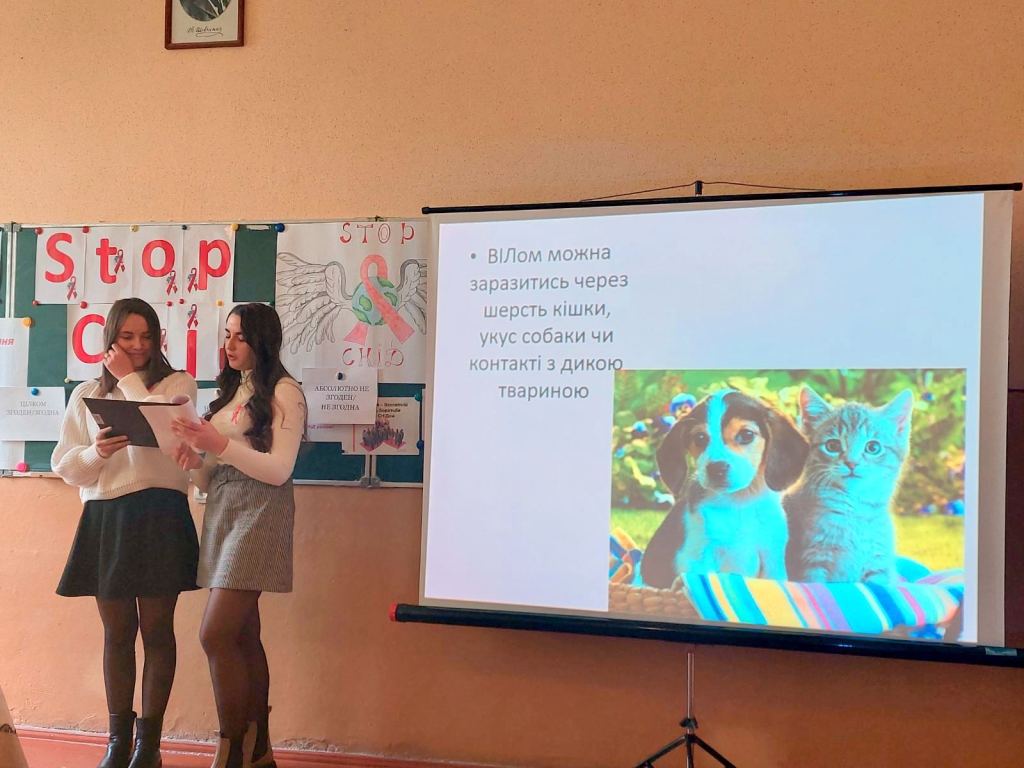 У рамках акції «16 днів без насильства» 1 грудня класним керівником 10-Б Медвідь М.І. було проведено годину спілкування «Зупинимо СНІД разом!» Під час заходу учні поповнили свої знання про те, як вберегти себе і своїх рідних від цієї хвороби, повторили шляхи передачі ВІЛ/СНІД, виконали вправи «5 секунд», «Цінності учнів», «Клякса», «Серце людяності та розуміння». Також, у фойє школи було оформлено виставку малюнків «Стоп СНІД!». Такі заходи допомагають учням усвідомити всю небезпеку, яку несе СНІД, уберегти себе від страшного захворювання, зробити правильний вибір у житті.