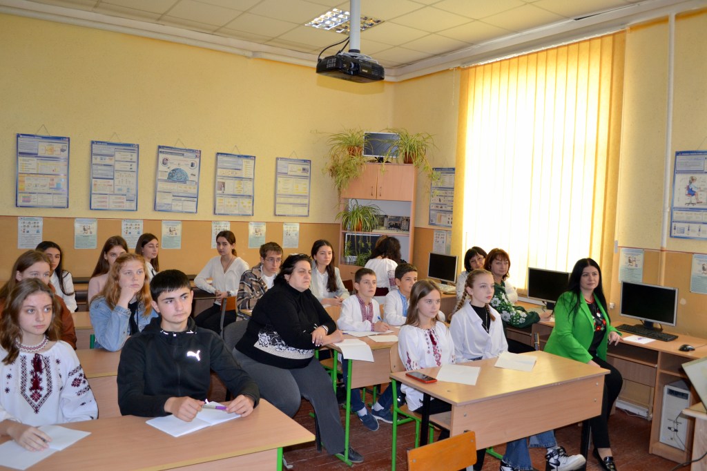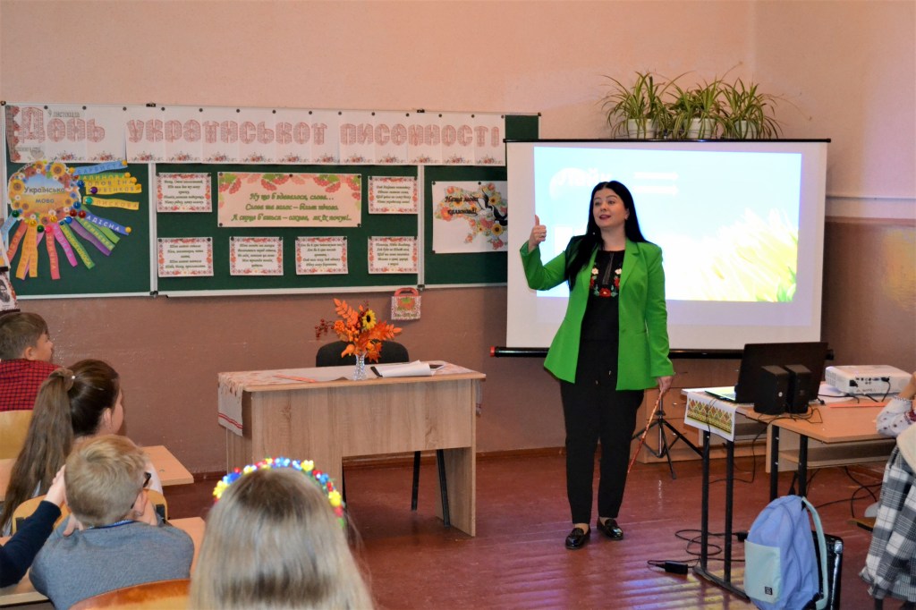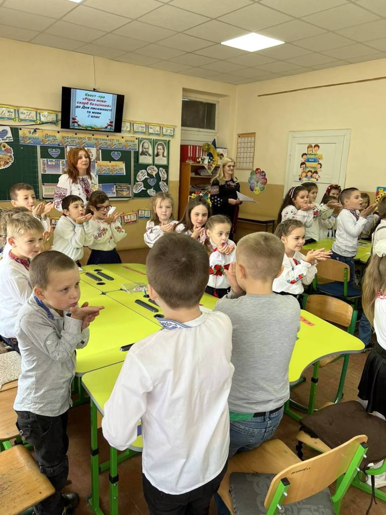 У 5-А класі класний керівник Шніцер Габріелла Гаврилівна спільно зі своїми вихованцями до Дня писемності і в рамках тижня української мови та літератури підготувала інтерактивне заняття «Українська мова – мова калинова». Захід проведений на високому фаховому рівні, з дотриманням усіх вимог чинної програми НУШ. Відчувалася наскрізна лінія – формування життєвих компетентностей школярів, їхньої активної громадянської позиції, конкурентоспроможності у майбутньому. Надзвичайно потужним був і виховний момент – патріотичний, що зараз є в пріоритеті. Усім сподобалися інтерактивні вправи: «Тест на національність», україномовний флешмоб «Соцмережі UA», «Паляниця» або говоримо українською правильно, поради-лайфхаки російськомовним українцям, які добирали самі учні, та інші завдання з опертям саме на сучасність.