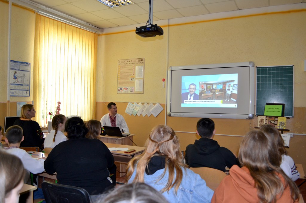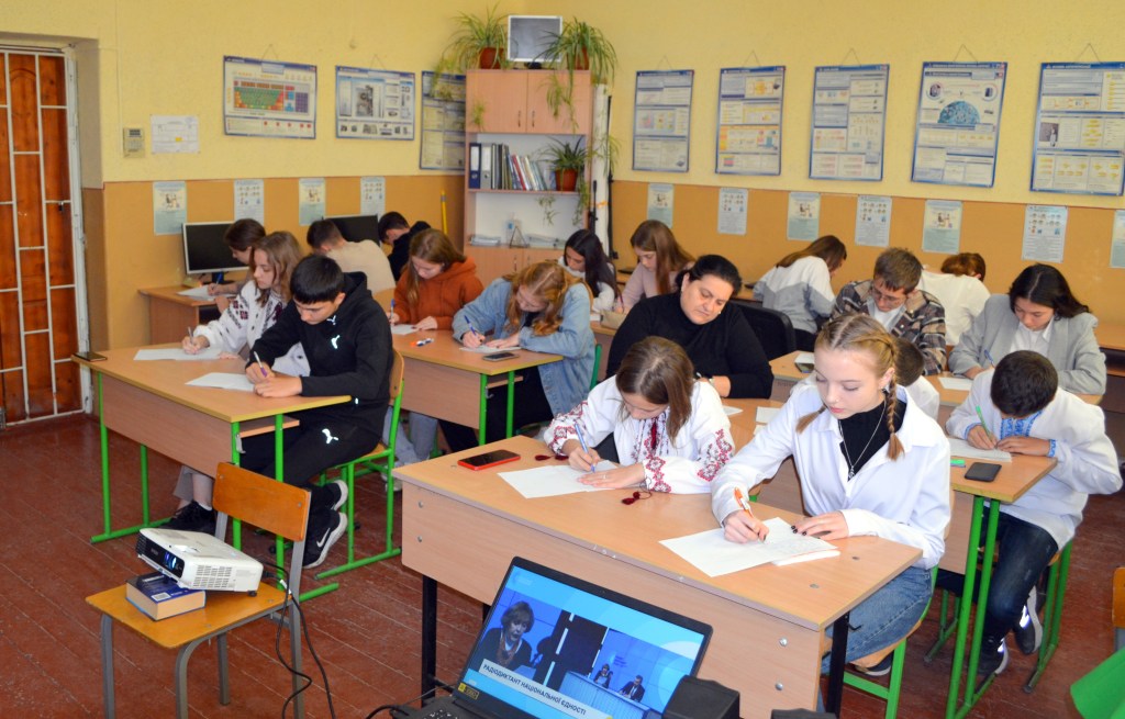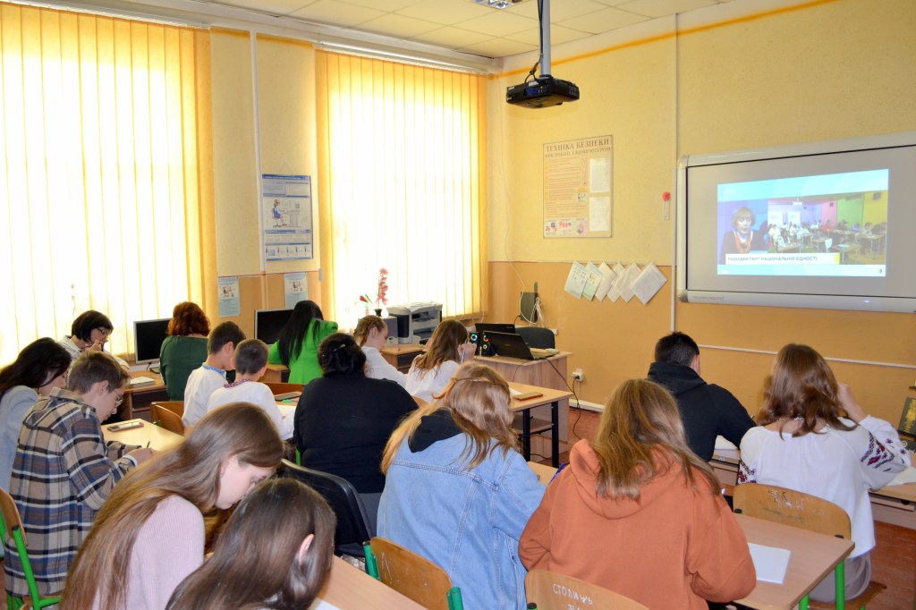 Об 11 годині всі охочі учні та вчителі школи долучилися до написання радіодиктанту національної єдності, який вразив своєю щирістю та зворушив до сліз, адже написаний Іриною Цілик про моменти, які наразі переживаємо спільно ми всі. «Твій дім» – назва цьогорічного тексту надзвичайно символічна і промовиста. Імпонувало усім і акторське відтворення тексту народною артисткою, Героєм України – Адою Роговцевою, і життєствердні акорди, що прозвучали насамкінець у диктанті. Слідом за авторкою віримо, що наш дім, Україна, «…вистоїть, виборсається, дочекається « мільйонів схвильованих вигуків :»Я вдома!» Вигуків тих, хто тепер, »… мов ті равлики, знають ціну великих переселень…», хто в один мент, на світанку 24 лютого, опинився на «…розпуттях велелюдних…».